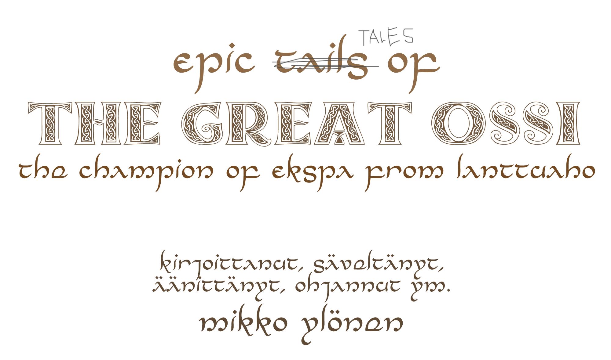 Mukavaa, kun piipahdit näille sivuille. Lähitulevaisuudessa tapahtuu nimittäin jotain överin ööppistä, sillä Epic Tails of The Great Ossi - The Champion of Ekspa from Lanttuaho (lyhennettäköön niin, että jatkossa puhutaan ETOTGO:sta), fantasiataruista ammentava ja ei lainkaan (ei siis yhtään) roolipelikulttuuria parodioiva tekele julkaistaan äänikirjana.
